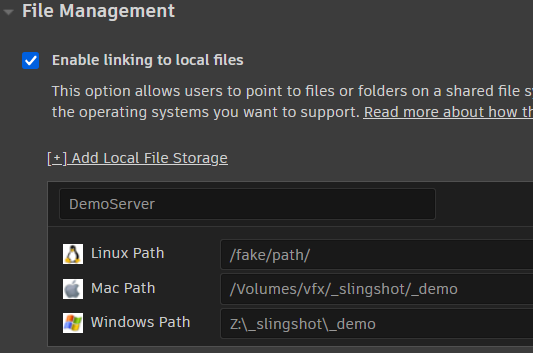In Shotgrid -> Site Preferences -> File Management, add a Local File Storage entry with paths to the local storage root folder.