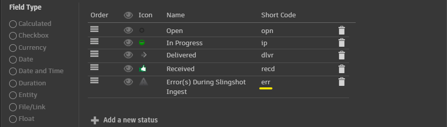- Click on 'Add a new status' to create a brand new status if necessary.