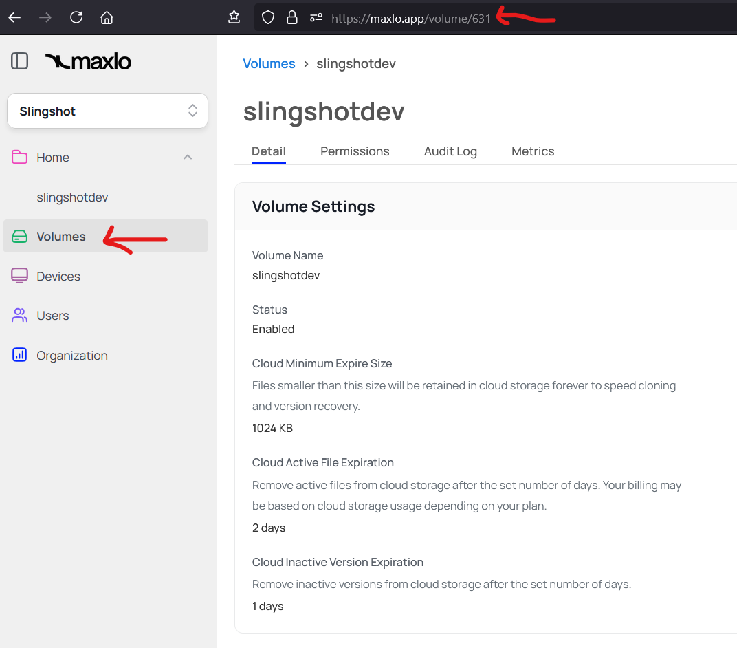 /Volumes/slingshotdevactually belongs to the Maxlo volume_id631